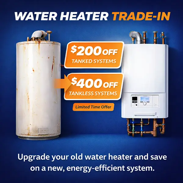 At The Water Heater Specialist, we believe reliable service should also be affordable. Take advantage of our current specials and savings designed to help you get the service you need without overpaying.